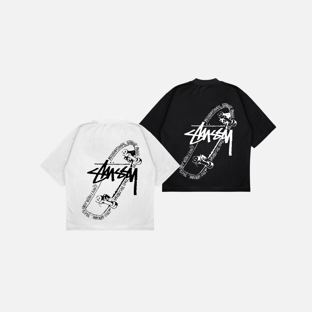 Introducing the Stussy Skateboard T-Shirt, made with soft and sustainable organic cotton. Perfect for streetwear enthusiasts, this shirt features the iconic Stussy logo for a nice touch. Upgrade your wardrobe with this stylish and eco-friendly choice.